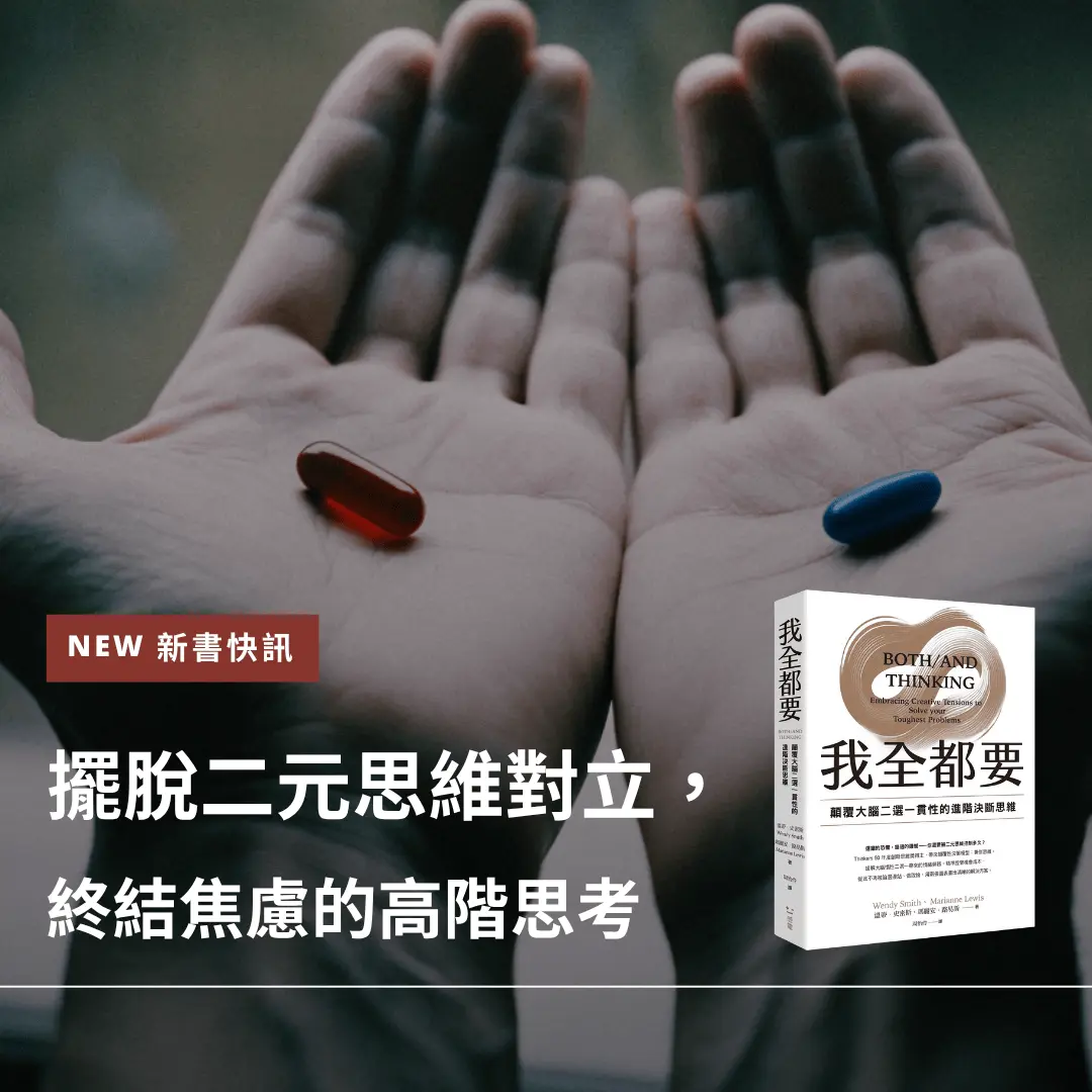 選錯的恐懼,錯過的遺憾——你還要被二元思維控制多久?《我全都要》顛覆傳統決策模型,融合心理學、大腦科學與行為科學,帶你學會「兼並思維」(Both/And Thinking),讓看似對立的選項成為互補資源,幫助你擺脫選擇焦慮,找到第三種更適合的選擇!