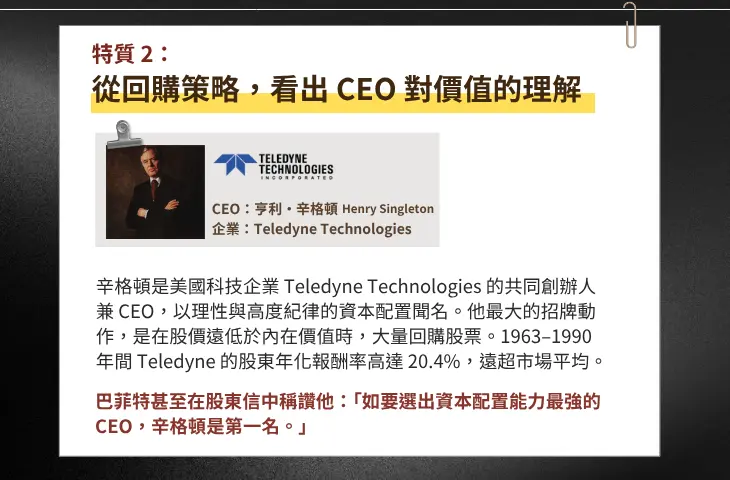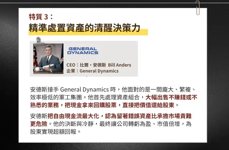 作者精選八位在經濟低迷與高利率時期,仍能為股東創造超過 20% 年化報酬的執行長,他們專注於資本配置最佳化:先投資具成長性的本業,再尋找外部機會、償還債務、實施庫藏股,最後才發放股息。