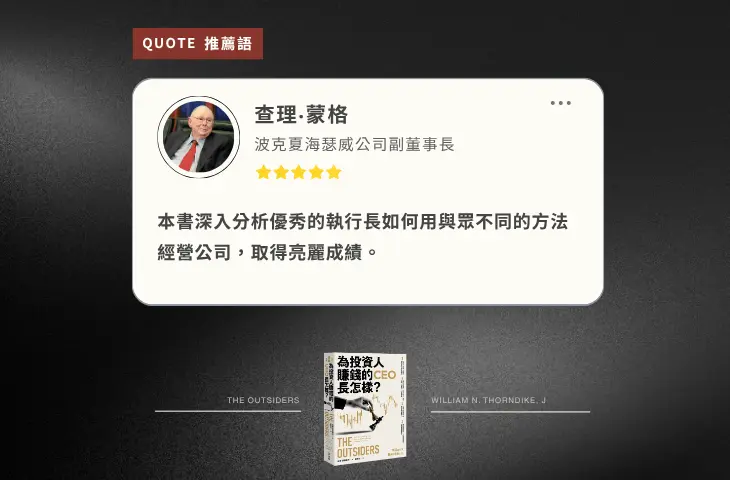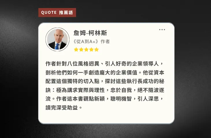 本書揭示如何透過領導者的決策模式,判斷企業的長期價值。對希望提升市場判斷力、優化投資組合的投資人而言,這是一本必讀的策略指南。